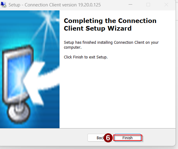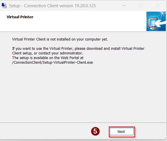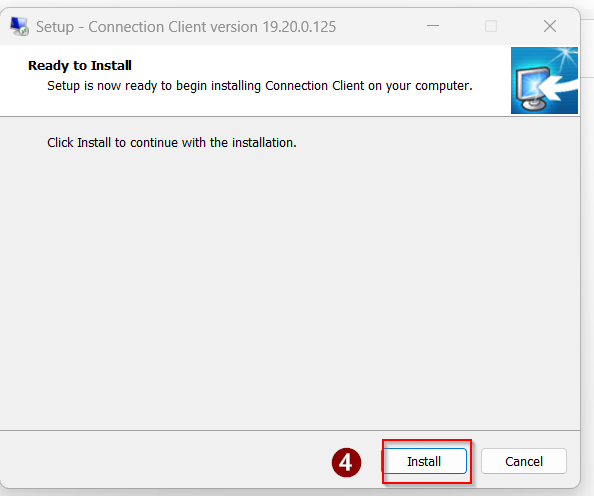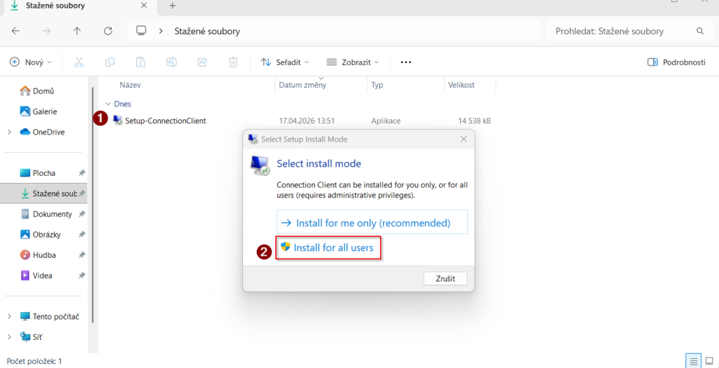 Po stažení z našeho Depotu uvidíte v prohlížeči nebo ve složce stažených souborů soubor Setup-ConnectionClient (krok č.1). Dvojklikem jej spusťte.